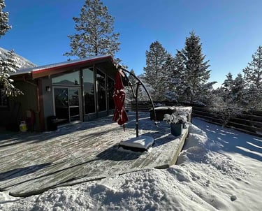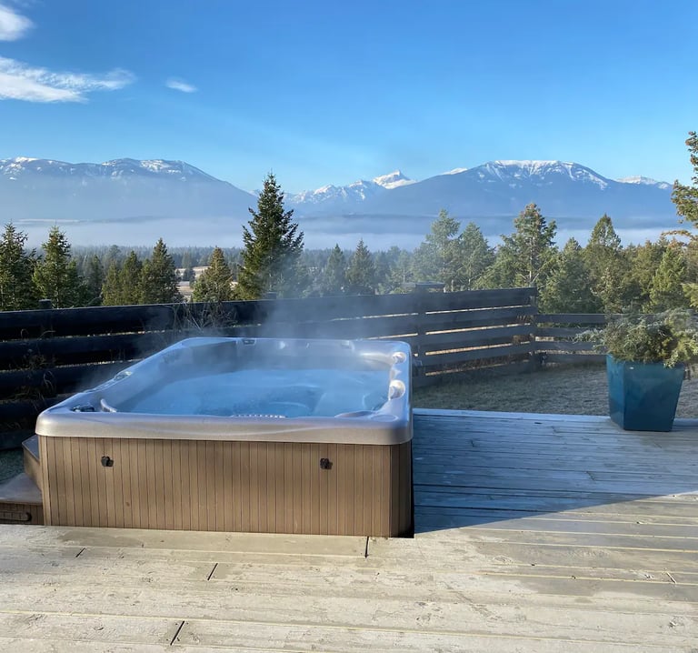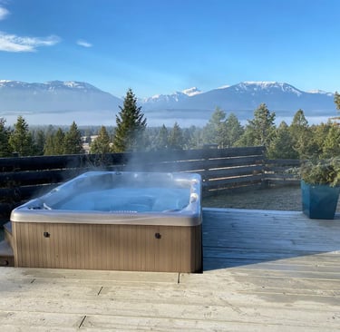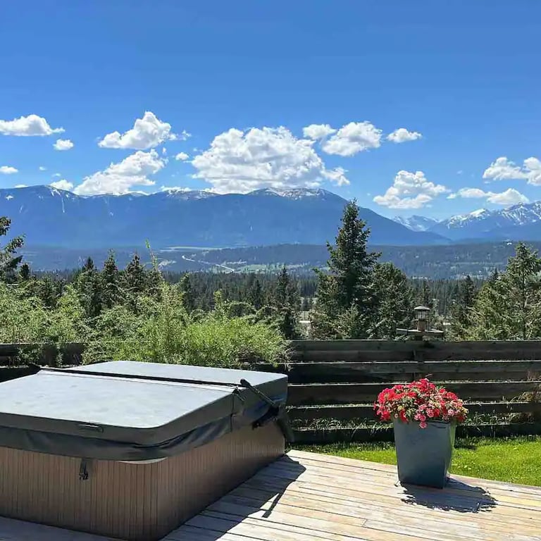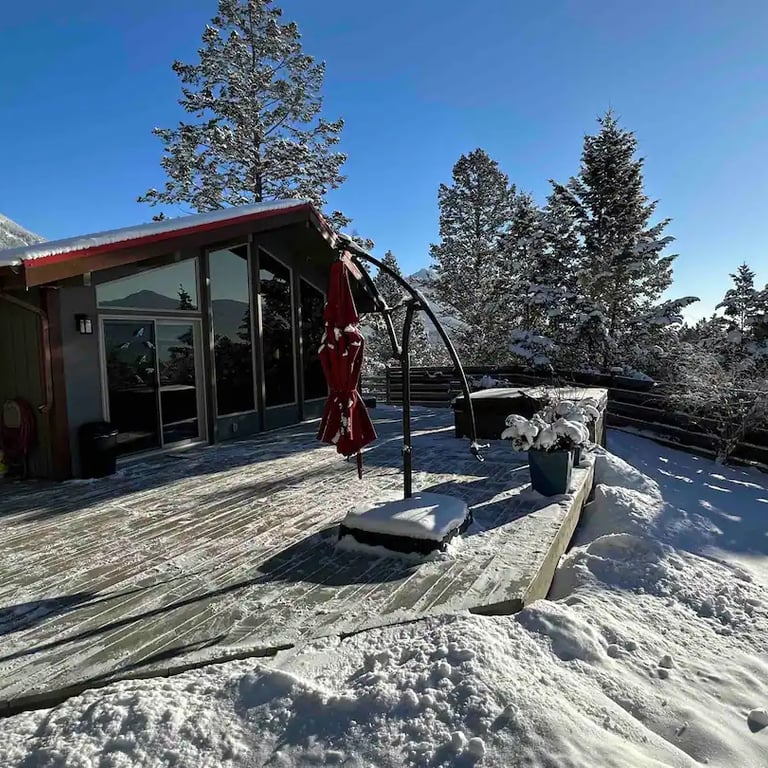 Immerse yourself in the picturesque surroundings, as you wake up to stunning views of snow-capped peaks and expansive valleys. The chalet boasts cozy interiors, comfortable furnishings and a crackling fireplace, creating a warm and inviting atmosphere. Unwind on the spacious deck, breathing in the fresh mountain air, soak in your own private hot tub or take a leisurely stroll through the nearby trails, exploring the wonders of nature. Whether you seek adventure or simply a peaceful respite, our private mountain chalet is the perfect choice for your short term escape.