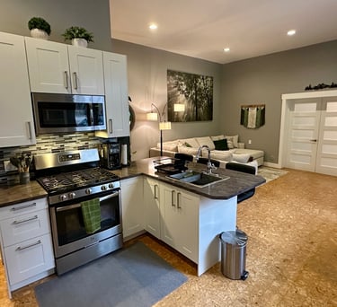 Relax and Unwind at this modern fully renovated one bedroom, two full bathroom cottage! Hiking and biking trails right from your door.
